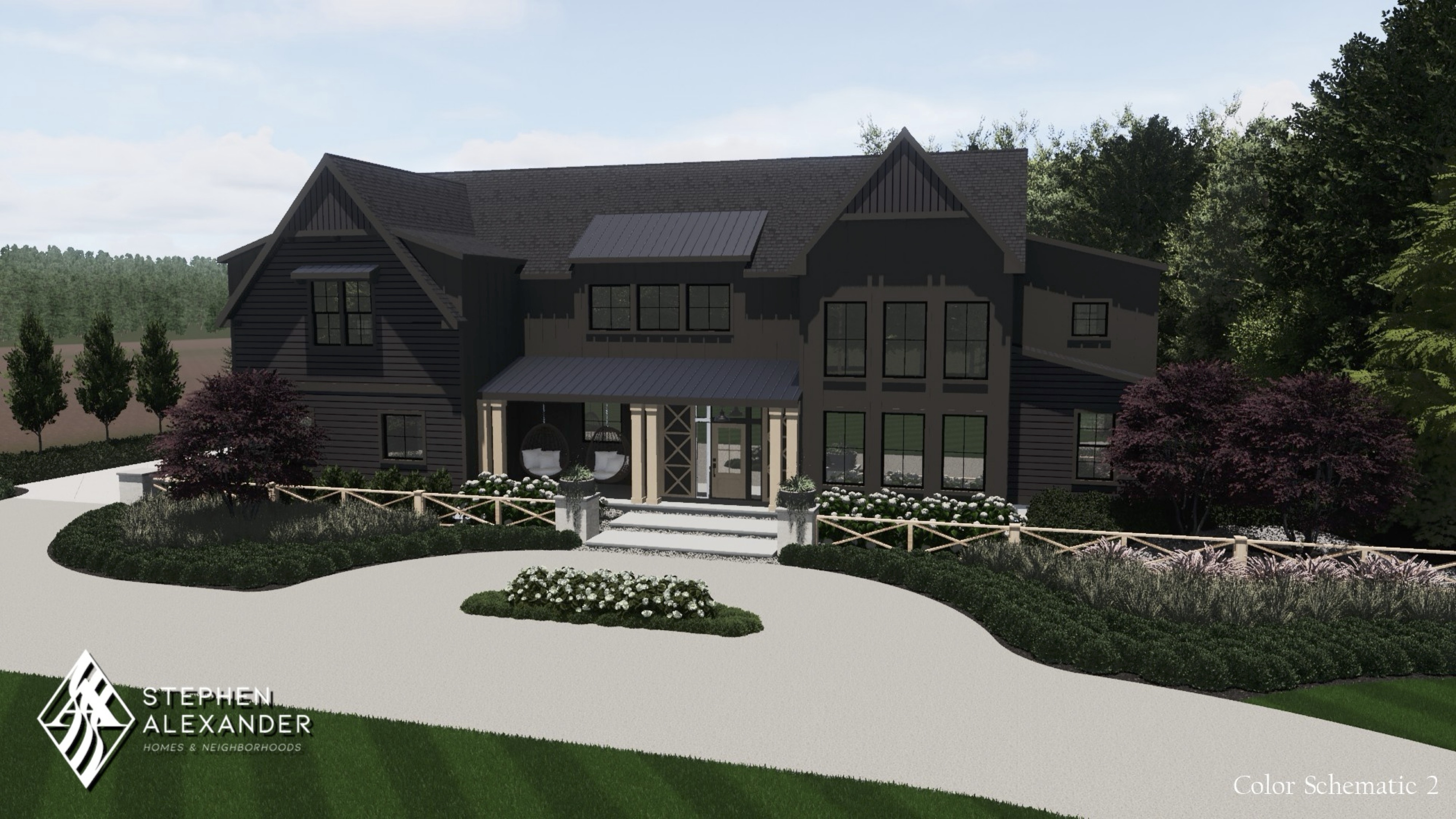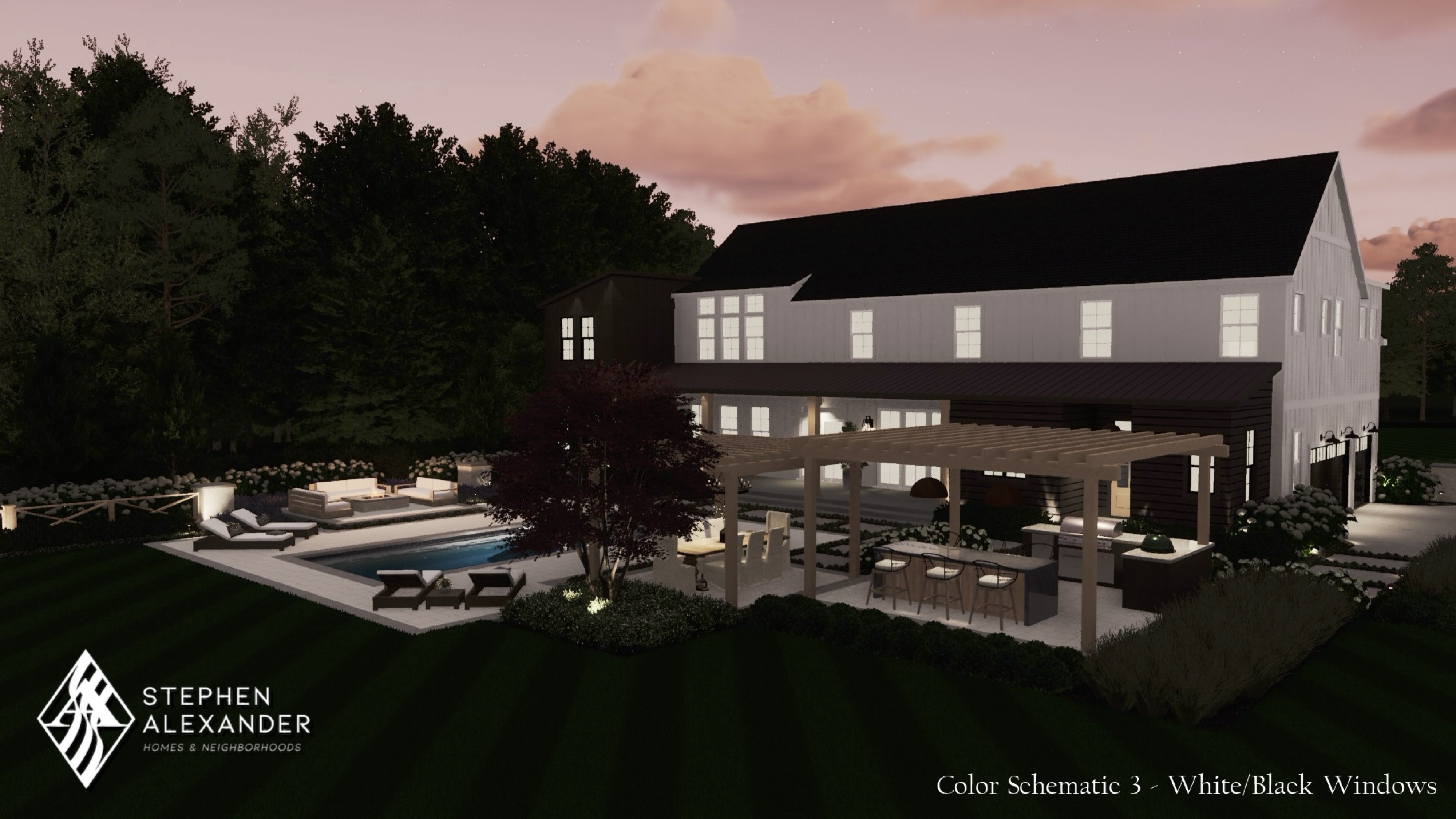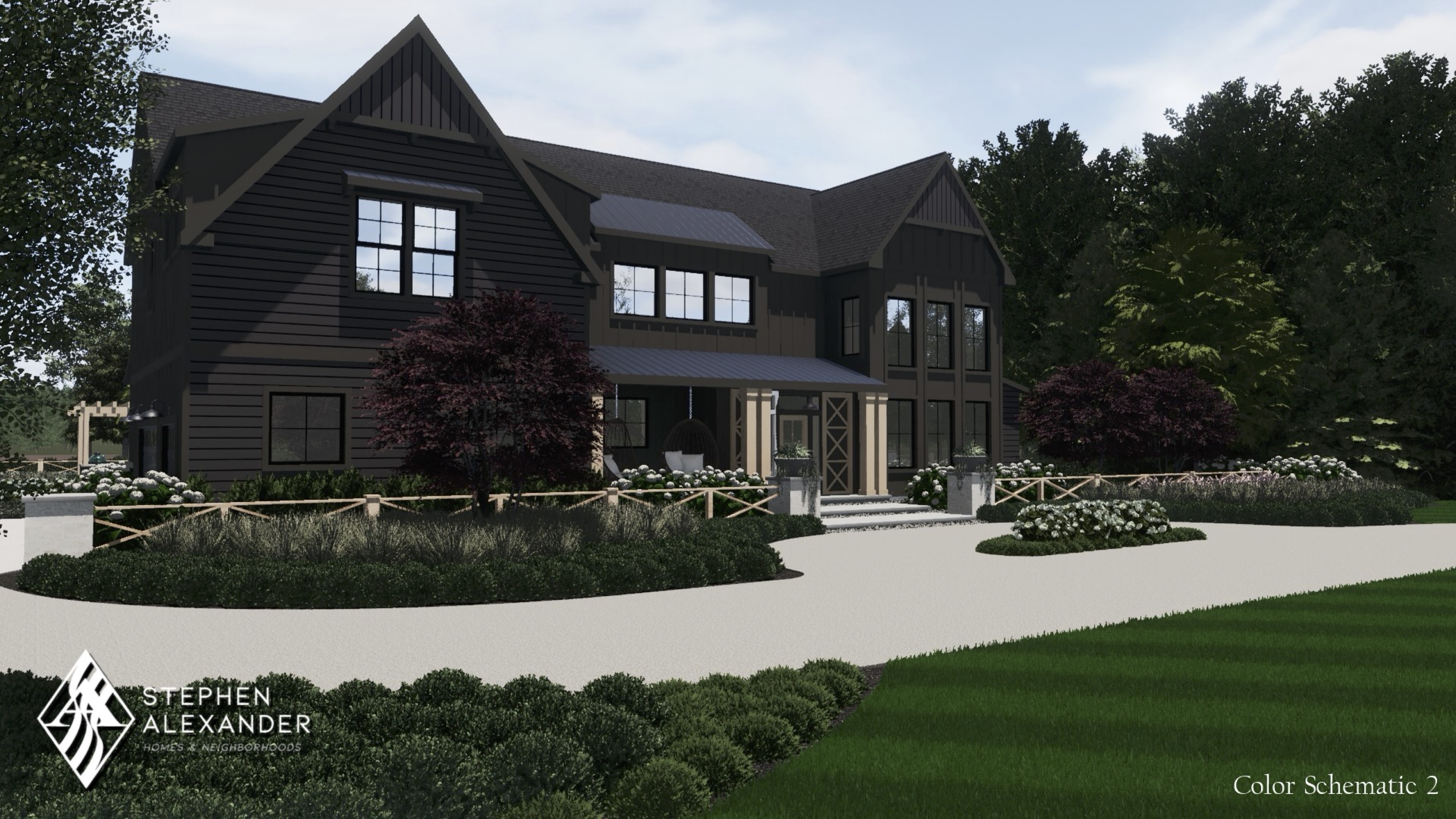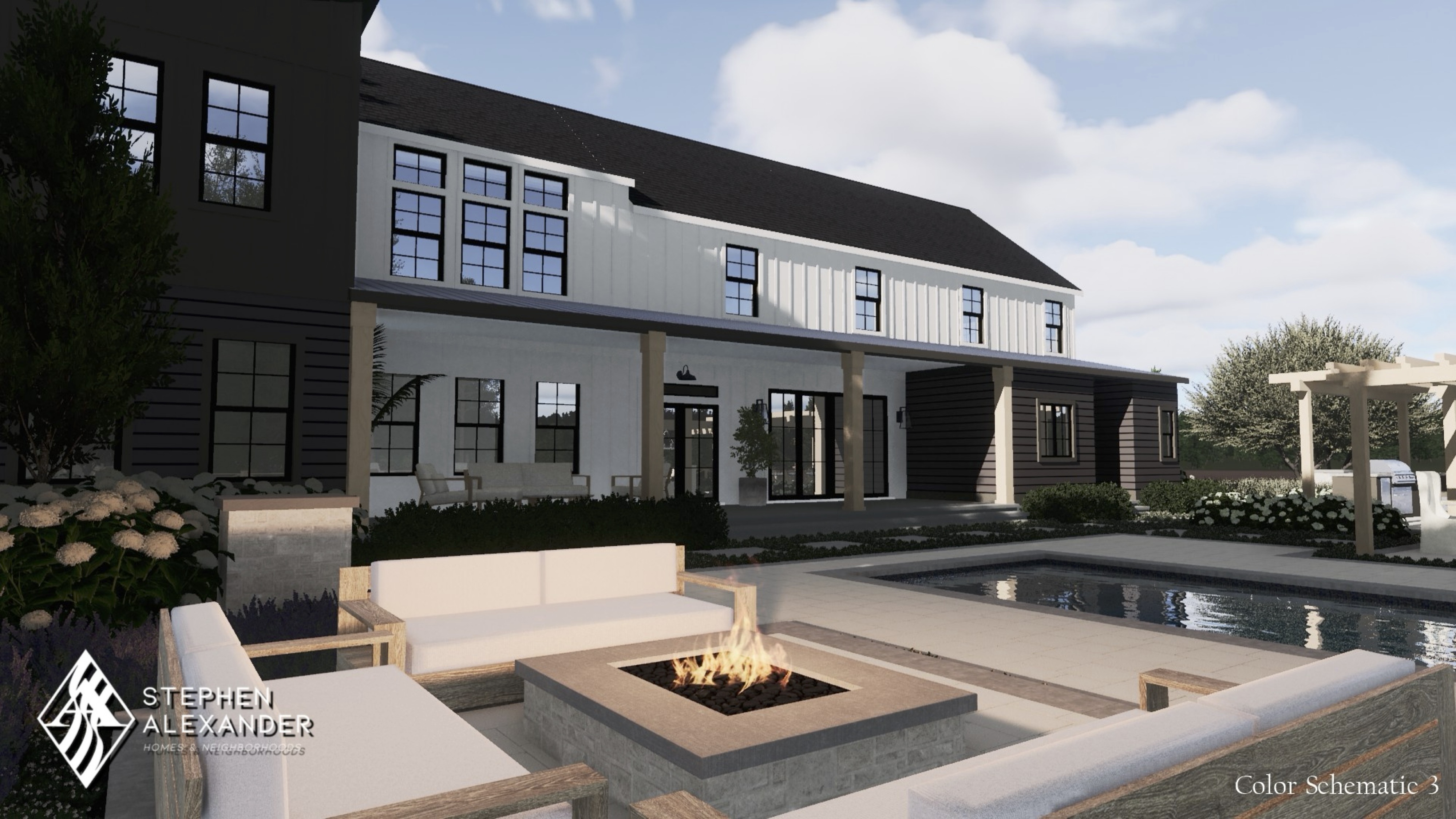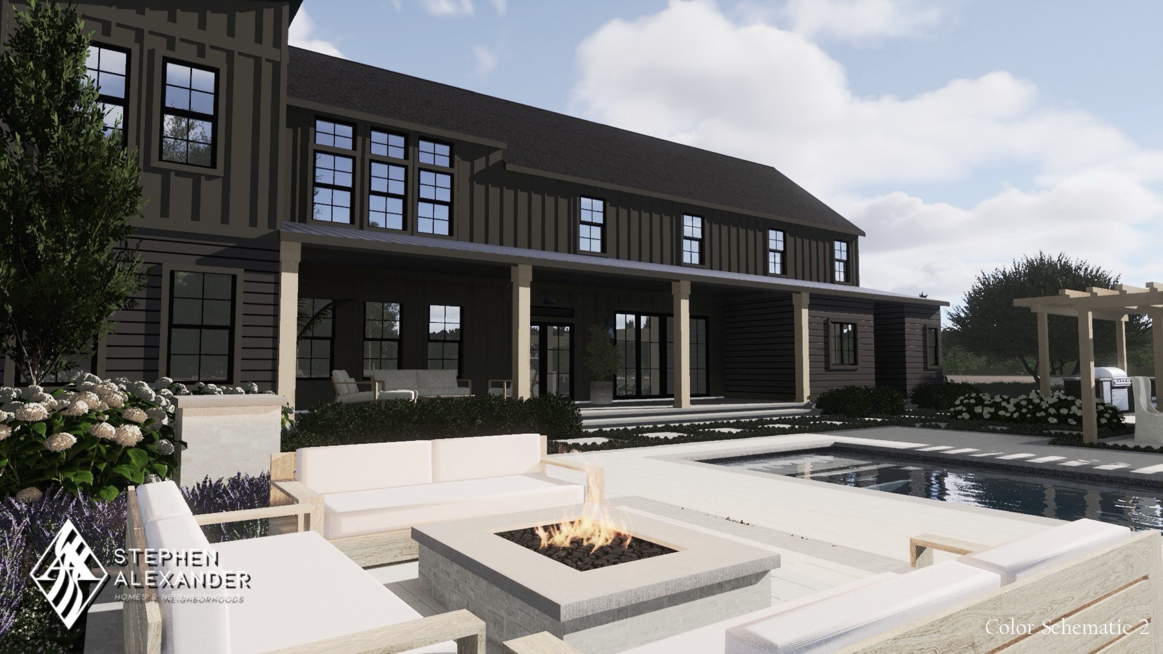 New European inspired plan with dual primary suites and built in pool house.
